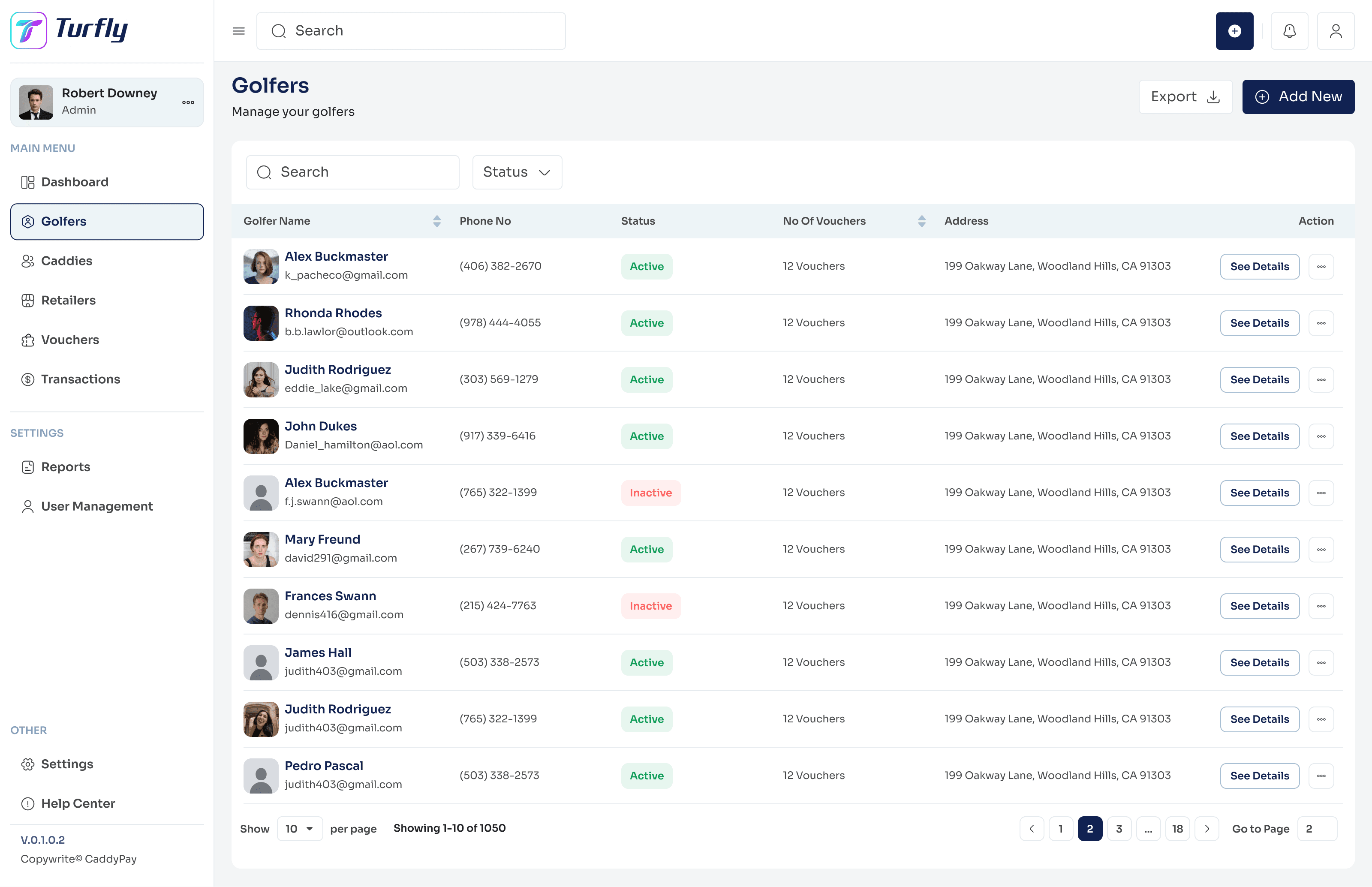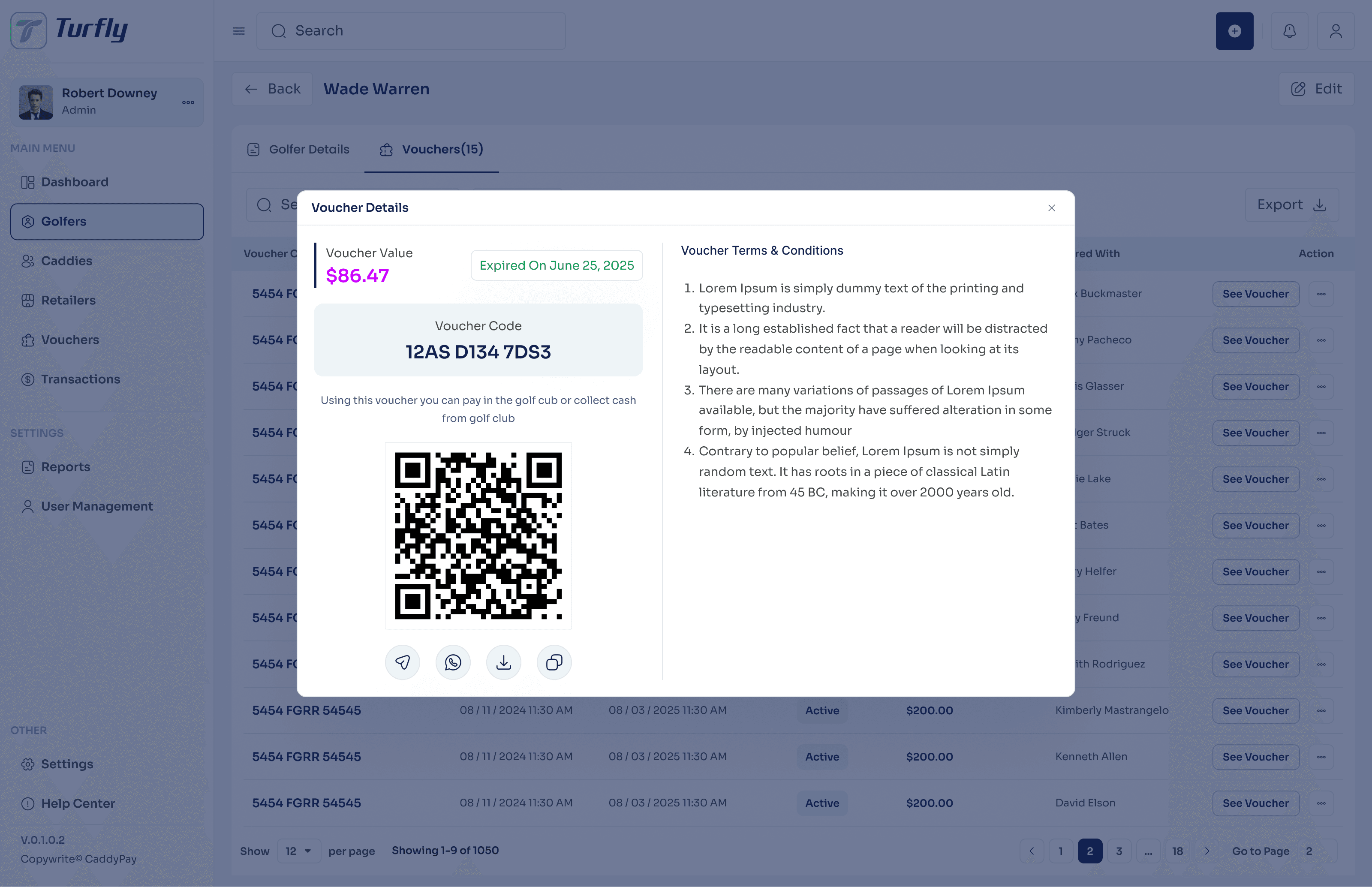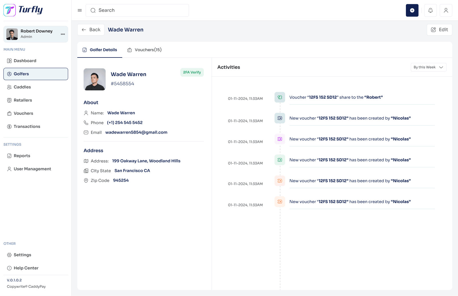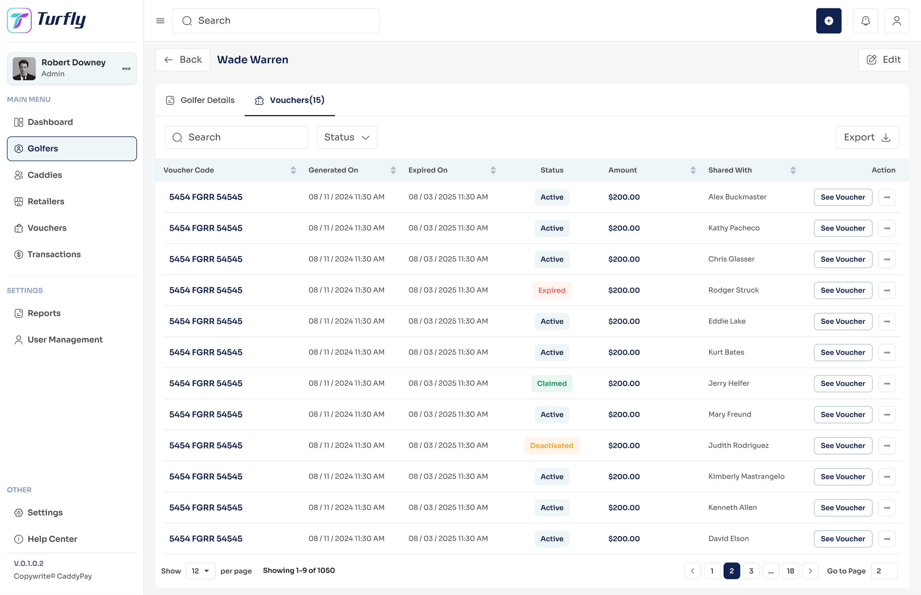 Golfers, caddies, and retailers all touch the same voucher from different angles. Designing the admin view of all three required a consistent data model that could surface any relationship to any transaction